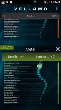 Vellamo is probably the most detailed of the tests and the phone did just fine with it. In the HTML5 section it scored 2863 which is second only to the Sony Xperia Z Ultra. The Metal portion was equally impressive as the Vibe Z placed second, slightly behind the Note 3.